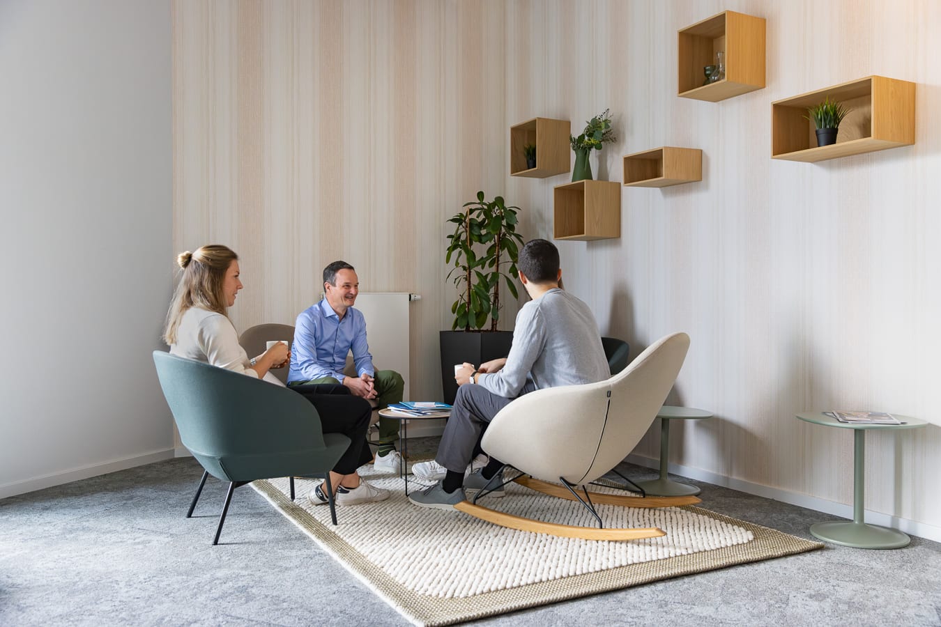 Firmenhandy (iPhone), Notebook / Macbook, Mitarbeiter PC Programm, Ergonomische Arbeitsplätze, Kostenlose Getränke, Gemeinschaftsräume mit Wohlfühlcharakter
